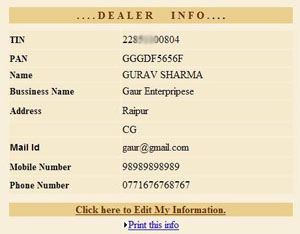 2: Click on link "Click here to Edit My Information" to Edit User Information. User can edit the information available in textbox.