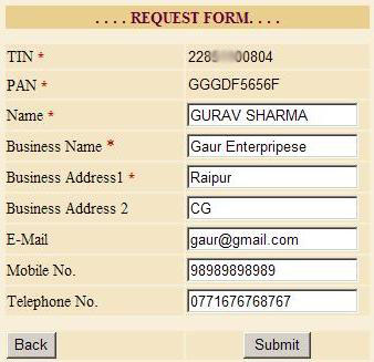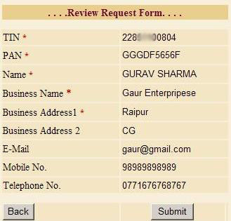 4: If on reviewing the information filled is Ok then Click Submit. Otherwise click Back Button to Change information again.
