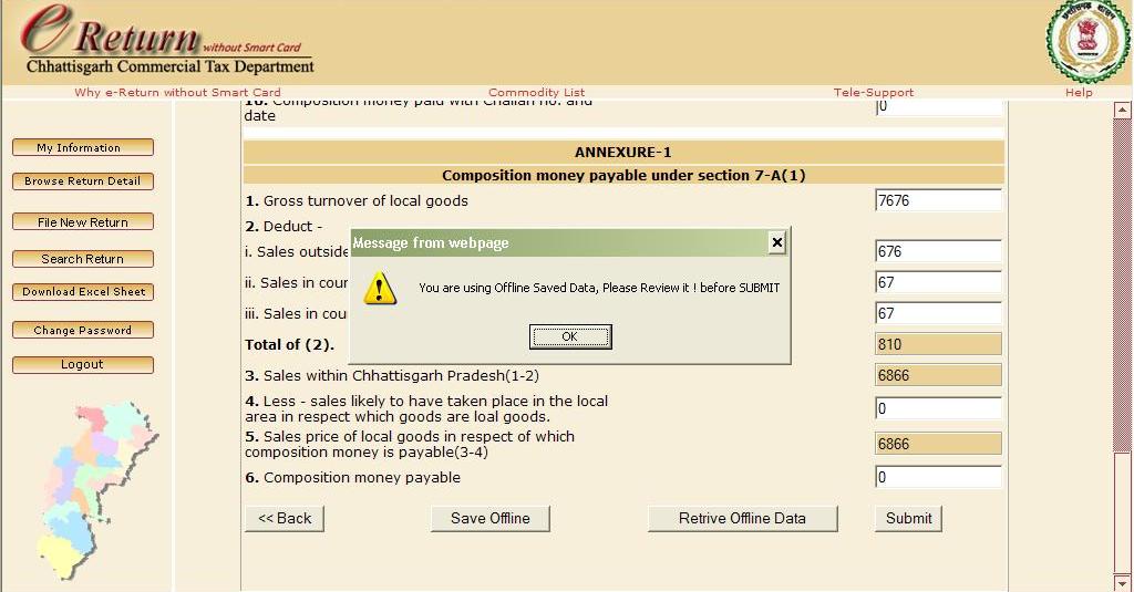 6: A message appear showwing that your offline data has been retrived.Please check that before Submitting the Form.